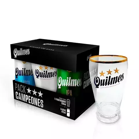 Gift Pack Quilmes Campeones 1 Vaso Murphy 330ml + 5 Latas 473 Mix